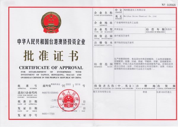 臺港澳僑投資企業(yè)批準證書(shū) 營(yíng)業(yè)執照